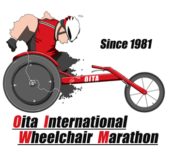 大分国際車いすマラソンの公式ロゴマークは、第30回記念大会(平成22年) に際して大会実行委員会が定めたものである。 競技用の車いす(レーサー)へ乗り、フィニッシュに向かって力強く疾走する選手の姿は、第30回を記念して、30°右に傾けた大分県の地形をそのまま使用している。